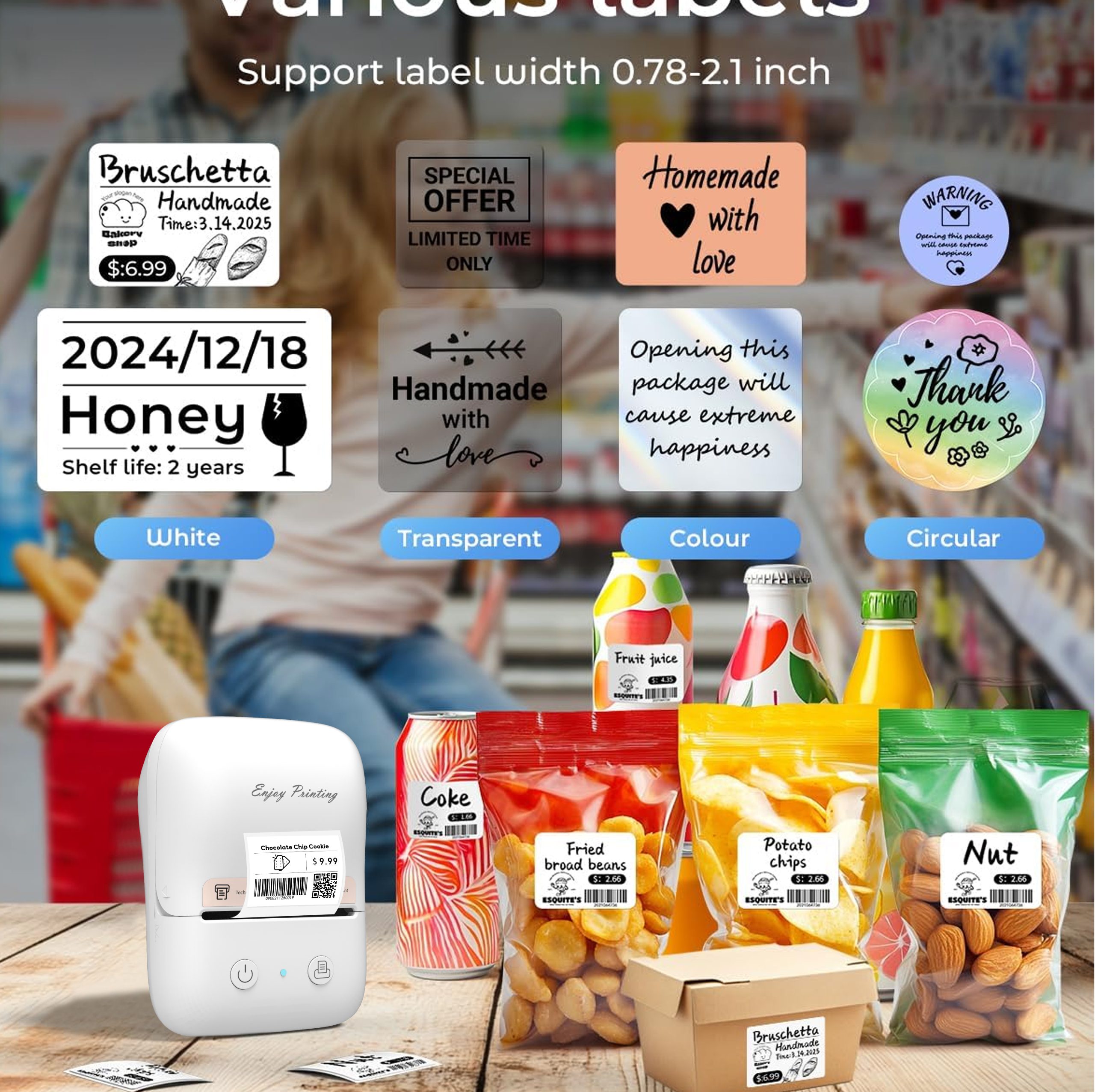 Print professional price tags, ingredient labels & product barcodes (20-50mm width) – perfect for cottage food businesses, flea market sellers, and Etsy shops. Batch print 100+ labels in minutes during work hours or event prep!