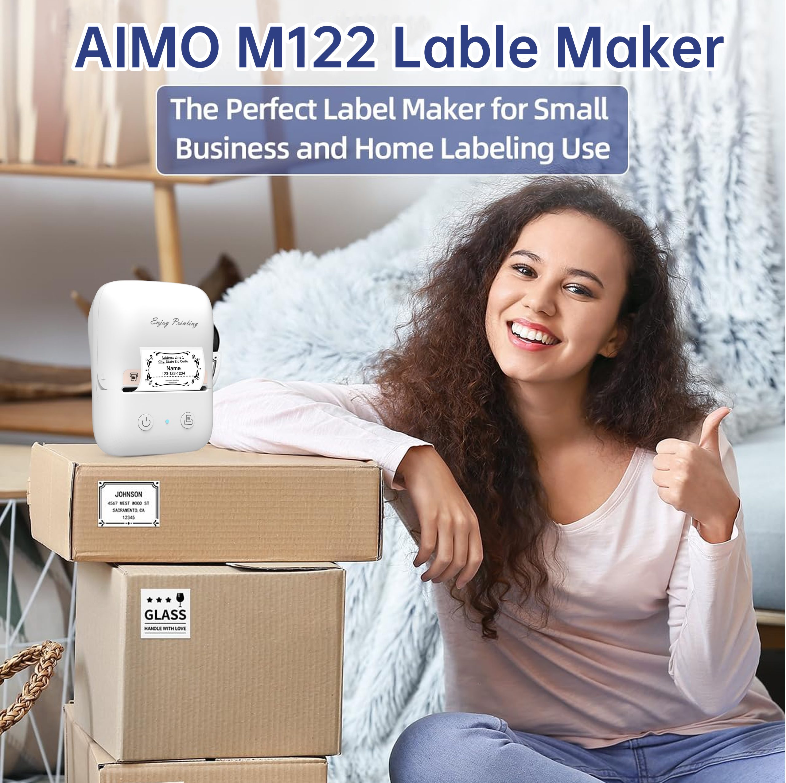 AIMO Smart Label Maker M122 Upgraded Label Printer Bluetooth No Ink Portable for Small Business, Address, Office, Home for Phone